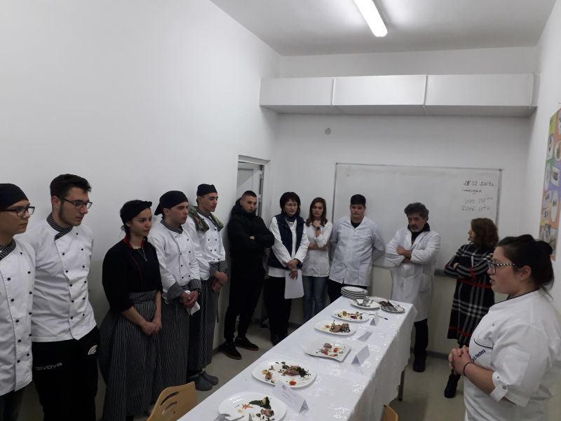 Според регламента състезателите приготвиха ястия от свинско бонфиле с трикомпонентна гарнитура и сос. Бяха изключително мотивирани, работиха с желание и проявиха много творчество и въображение. Всяко от ястията се отличаваше със собствен почерк и оригиналност. Комисия от професионалисти оцени работата на младите състезатели. На първо място се класира Гергана Хачерян, която ще представи гимназията на регионалното състезание по професии през м. март в град Велико Търново.